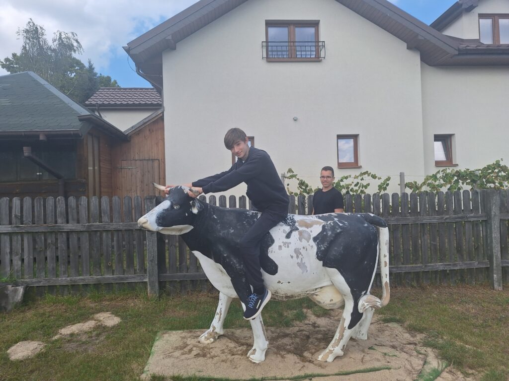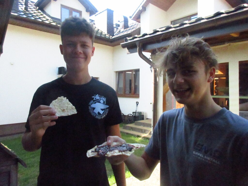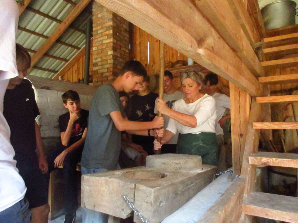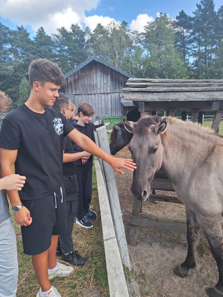 Leśniczówka Paryż w miejscowości Rzy to niezwykle klimatyczne miejsce szerzące wiedzę przyrodniczą oraz pokazujące życie codzienne polskiej wsi we wcale nie tak odległych czasach. Już tradycyjnie, jest ona miejscem integracji klas pierwszych. W tym roku klasy 1a i 1b miały okazję spróbować swoich sił podczas przygotowania zdrowych, tradycyjnych posiłków. Uczniowie samodzielnie mielili mąkę na zabytkowych żarnach, piekli podpłomyki i własnoręcznie ubijali masło. Dowiedzieli się, dlaczego otręby zapewniają właściwą perystaltykę i dlaczego warto używać w kuchni mąki razowej. Wycieczka była też okazją do spaceru po lesie gdzie zapoznali się z trudami pracy leśnika oraz współczesnymi wyzwaniami związanymi z ochroną lasów państwowych, ćwiczyli orientację z terenie, podziwiali leśną faunę i florę. Mieli też okazję nakarmić zwierzęta gospodarskie podczas odwiedzin w mini zoo. Na koniec zostało jeszcze trochę czasu na rozwijanie pasji; gry i rywalizacje sportowe na świeżym powietrzu, śpiewanie piosenek przy gitarze, przyjacielskie pogaduchy czy też po prostu chwilę cichego kontemplowania przyrody. Mamy nadzieję, że po takiej wycieczce pierwszaki szybko zaaklimatyzują się w naszym Technikum.