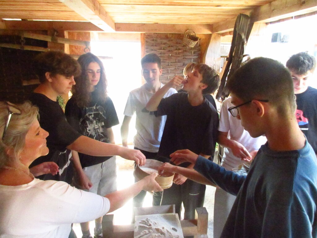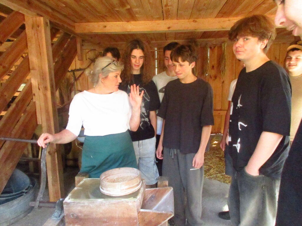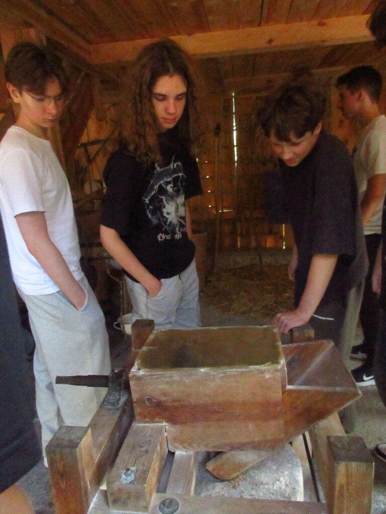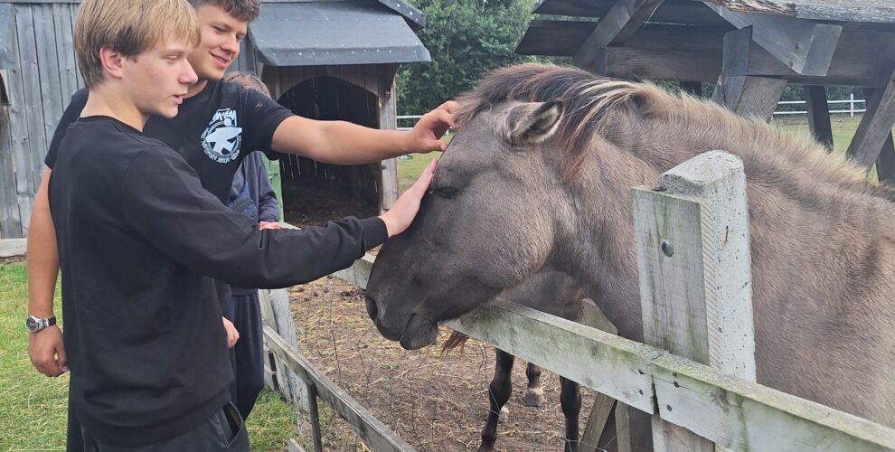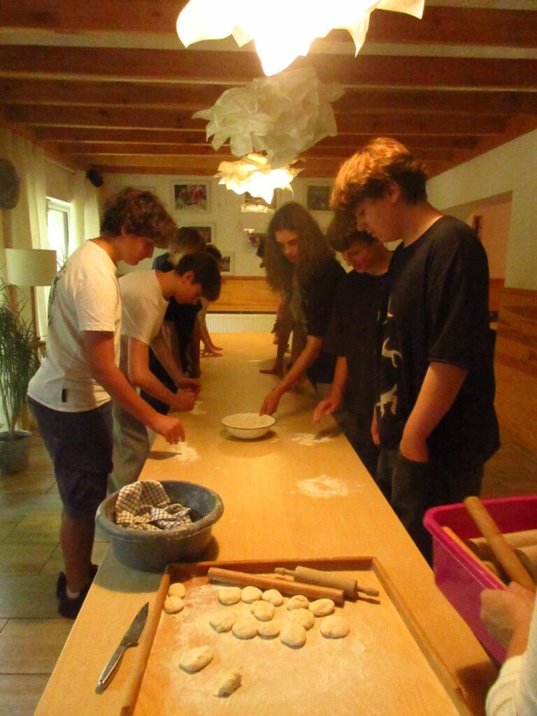 Leśniczówka Paryż w miejscowości Rzy to niezwykle klimatyczne miejsce szerzące wiedzę przyrodniczą oraz pokazujące życie codzienne polskiej wsi we wcale nie tak odległych czasach. Już tradycyjnie, jest ona miejscem integracji klas pierwszych. W tym roku klasy 1a i 1b miały okazję spróbować swoich sił podczas przygotowania zdrowych, tradycyjnych posiłków. Uczniowie samodzielnie mielili mąkę na zabytkowych żarnach, piekli podpłomyki i własnoręcznie ubijali masło. Dowiedzieli się, dlaczego otręby zapewniają właściwą perystaltykę i dlaczego warto używać w kuchni mąki razowej. Wycieczka była też okazją do spaceru po lesie gdzie zapoznali się z trudami pracy leśnika oraz współczesnymi wyzwaniami związanymi z ochroną lasów państwowych, ćwiczyli orientację z terenie, podziwiali leśną faunę i florę. Mieli też okazję nakarmić zwierzęta gospodarskie podczas odwiedzin w mini zoo. Na koniec zostało jeszcze trochę czasu na rozwijanie pasji; gry i rywalizacje sportowe na świeżym powietrzu, śpiewanie piosenek przy gitarze, przyjacielskie pogaduchy czy też po prostu chwilę cichego kontemplowania przyrody. Mamy nadzieję, że po takiej wycieczce pierwszaki szybko zaaklimatyzują się w naszym Technikum.